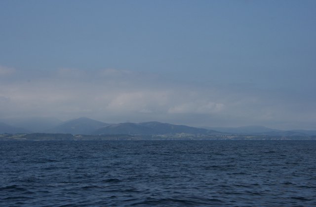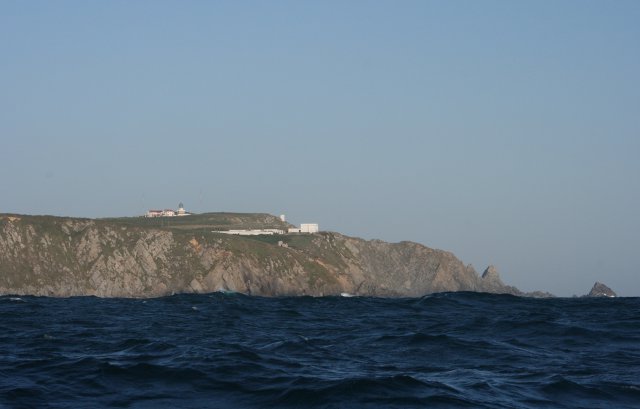 Martes 22 de julio. A las 7 y media de la mañana ha llegado un amigo de Viveiro que nos va a acompañar y a traido churros para desayunar. Hemos salido a las 8 en punto de la mañana.. El parte da viento del Nordeste, pero la intensidad parecía un poco alta. Antes de llegar a la Estaca de Bares ya hemos visto lo que nos íbamos a encontrar, olas de más de 1,5 metros y vientos de más de 20 nudos.
