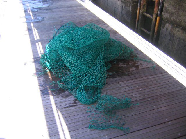 Íbamos tan tranquilos unos cuatro barcos navegando muy cerca y cuando pasamos frente al cabo Prior "nos atrapo" una red. Rafa se puso el traje de neopreno y se tiró al agua para ver si podía hacer algo, pero al final tuvimos que llamar a Salvamento marítimo. En menos de media hora nos enviaron de La Coruña a la Salvamar Mirfak, una Alusafe 2000, de 21,19 metros de eslora, con dos motores Caterpillar de 1.400 cv cada uno. Allí estaban Jesús, el patrón, Modesto, el mecánico y Lorenzo, el marinero. Rápidamente nos dieron un cabo y empezó el remolque que acabó en La Coruña. Estuvimos visitando el interiores y alucinamos. Parece mas un avión que un barco. Nos ayudaron a buscar un buzo y mientras que Rafa daba nuestros datos, el buceador nos quitó ¡¡9 metros de red!!, eso si nos dio un buen palo y aunque creo que excesivo,