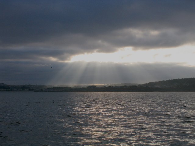 Jueves 17 de julio. Salimos de Gijón sobre las 6 de la mañana sin nada de viento, así que a motor otra vez. Llegamos a Ribadeo sobre las 16 horas. Menos mal que durante la travesía a eso de las 09,15 horas en 43º40'59"N 06º05'89"W vimos un montón de delfines pequeños comiendo sin parar. He hecho alguna foto, pero no ha salido ninguno.
