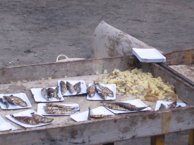 Por la tarde había fiesta y subimos hacia la parte de arriba de Vivero y en un prado nos han dado sardinas, grelos y ribeiro.