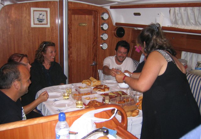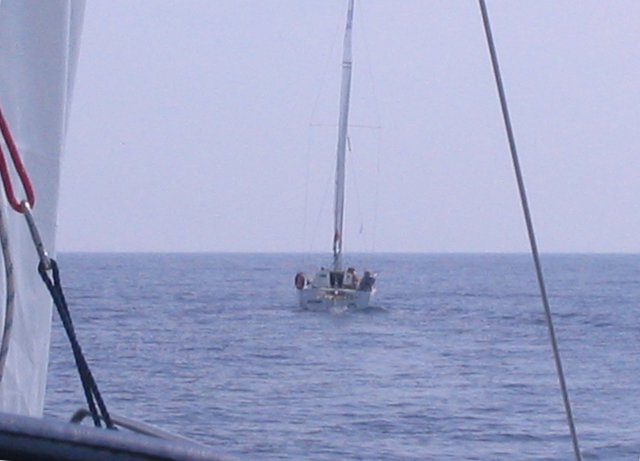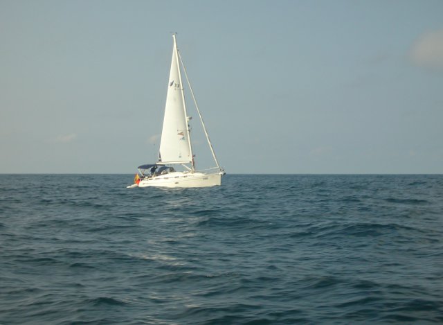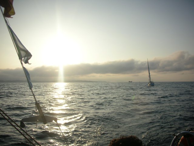 Como no sabíamos cuando y como teníamos que salir decidimos hacerlo cuando saliera nuestro amigo Javier "Trancanil" y, como él estaba en grupo 3 y nosotros en grupo 2, nos descalificaron por no salir en nuestro grupo, eso si hicimos toda la regata y llegamos los antepenúltimos y eso que nos confundimos y dimos ¡¡3 vueltas!! seguidas en una boya, la primera fue por confundirnos y las otras dos porque venía un "peazo buque de pelotas". Cuando pasó nos fuimos a la boya correcta y después hicimos por cuarta vez la ultima boya y de ahí a meta y cuál es mi sorpresa que desde el barco del juez no nos dan la llegada, así que decidimos pasar por meta otra vez por si acaso y esta vez si que oímos el pitido.