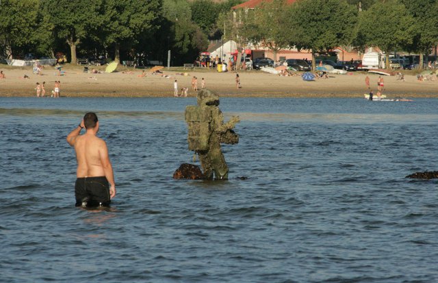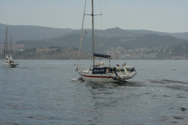 Salimos de Vilagarcía el 23 de julio, así que hasta allí fuimos. Nuestros amigos con sus barcos fueron llegando poco a poco hasta bien entrada la tarde. Hicimos una buena cena de bienvenida, como merecía la ocasión, y al día siguiente nos fuimos a Puebla. La travesía era corta, pero teníamos que parar en mi puerto, ya que el día siguiente, el 24 se celebraba en Aguiño la Festa do Percebe y no debemos de perder la ocasión de comer unos percebes. Cogimos los coches y hasta allí nos dirigimos. A doce euros el plato, nos pusimos de percebes hasta ....