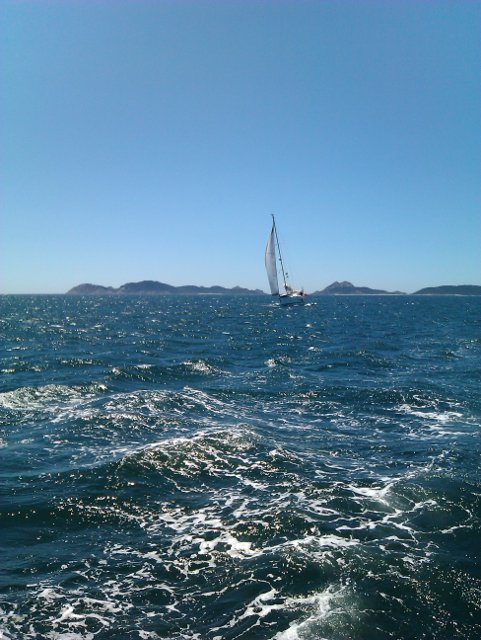 El 26 se levantó un día ventoso, con el mar un poco agitado. Íbamos a comer en la isla de Ons, pero al final desistimos y nos fuimos directos a Combarro, nuestro siguiente puerto.