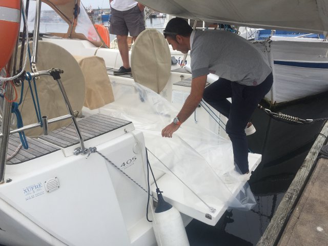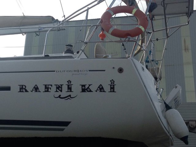 Además decidimos ponerle vinilos nuevos con el nombre en las aletas de Rafni, así es mas sencillo que nos reconozcan los barcos amigos.