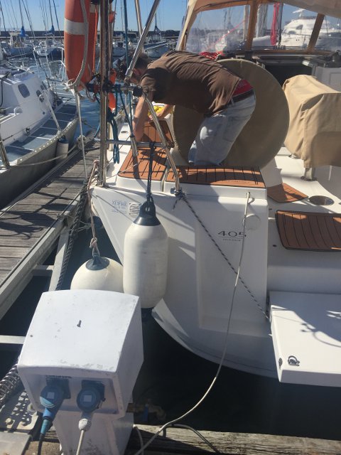 Hemos tenido que hacer un arreglo en el timón, ya que haciendo una revisión, vimos que un aro de teflón se había roto en cuatro trozos y gracias a encontrarlos todos nos pudieron hacer una pieza igual, pero para evitar sacar el barco del agua, la hemos hecho en 2 partes y está sujeta con un espárrago y tuercas en ambos lados, hace su función perfectamente. Tengo que dar las gracias a António Serôdio del Yate Clube do Porto, que tiene un barco igual que el mío y me hizo un vídeo muy explicativo de como funciona el aro en cuestión y a mi amigo Julio del Kirlo 2 que es mi maestro en bricolaje del barco, sabe hacer casi, casi todo lo del barco y es una excelente persona.