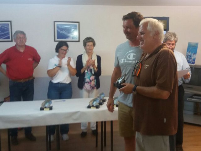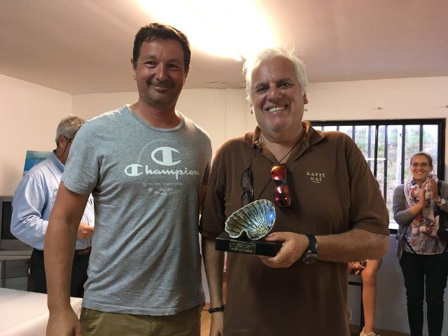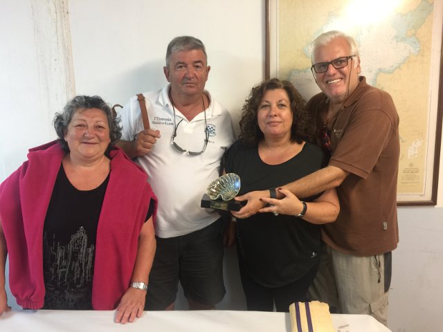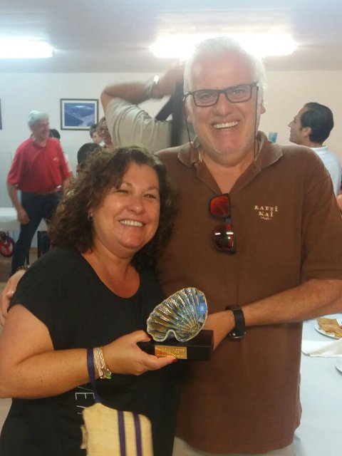 NIEVES Y RAFA CON EL TROFEO DE LA REGATA SOCIOS C.N. RIANXO 28 JULIO 2017