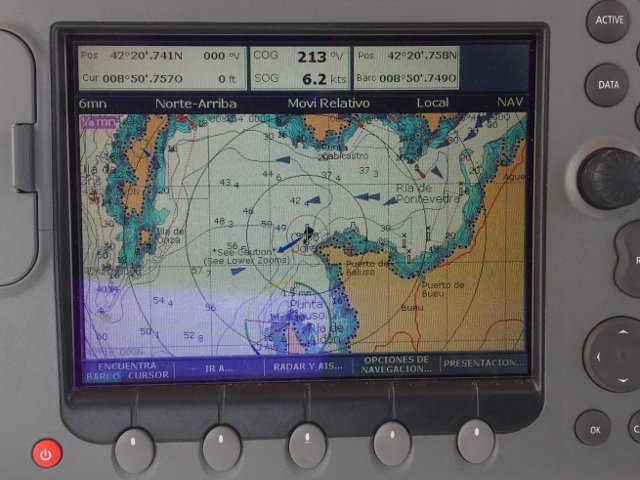 Salimos de Rianxo el día 30 de mayo, íbamos a motor y nos saltó una alarma que no sabíamos muy bien que era. En el reloj de Volvo aparecía un dibujo que nos hacía entender que teníamos problemas con el voltaje, después de revisar baterías y la correa del alternador y ver que estaba todo bien, nos dirigimos al náutico de Puebla para ver si nos podía revisar el barco un electricista.