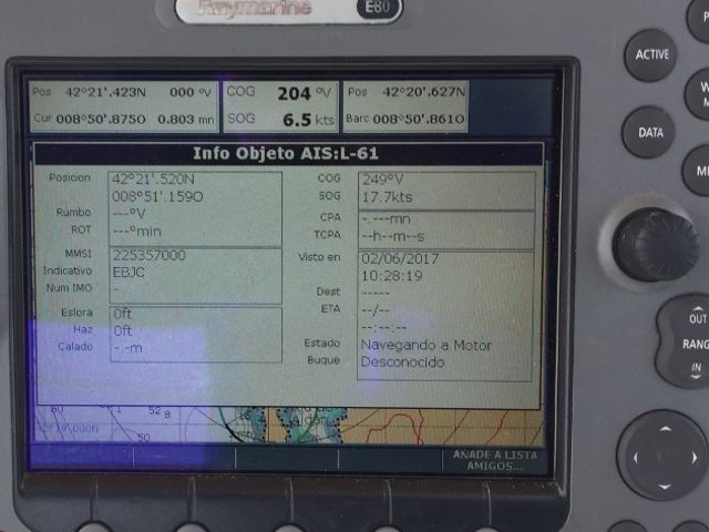El día 2 nos cruzamos con los barcos de la parada naval, que se celebró en la ría de Pontevedra, aunque la bruma no nos dejo ver con mucha claridad.