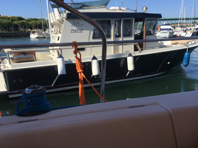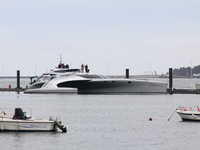 Al principio pensamos en fondear en la ría de Aldán, pero como estaba el día tan raro y brumoso, decidimos ir hacia Vigo, al pasar por Cíes y ver que era muy pronto, decidimos continuar a Baiona, cosa que tampoco nos convenció ya que se fue levantando viento del norte y, pudimos abrir el genova y poner la proa hacia Viana de Castelo, puerto que fue el primero que conocimos de Portugal en 2014 y teníamos buenos recuerdos tanto de los marineros, como del lugar. Estuvimos unos días y como teníamos un buen viento del norte, salimos dirección sur, hacia Leixoes. Solo con genova íbamos bastante rápido, así que llegamos pronto. Llamamos por vhf a la marina y nos extrañó que no contestasen, llamamos por teléfono y tampoco lo cogieron... de todas formas nos dirigimos al náutico y nos dijeron desde otro barco que no había marineros y que había sitio en el interior, pero con el viento que había y con la hélice de proa que nos fallaba a veces, decidimos irnos hacia Douro Marina, a pocas millas donde nos encontrábamos. Estuvimos 2 semana muy bien y cómodos en sus instalaciones. Es una marina bastante nueva y moderna, que tiene excelentes intalaciones y buenas atenciones, todos los días te llevan por la mañana temprano un par de panes recién hechos por cada tripulante para desayunar y además al estar 2 semana nos hicieron un buen descuento. Allí conocimos a mi amigo "virtual" de Facebook, Ricardo Oliveira de Sailing 360º y nos trató perfectamente bien. En esa marina pudimos ver el superyate Adastra de John Shuttleworth, trimarán valorado en mas de 11 millones de euros cuyo dueño es un naviero llamado Anton Marden. Equipado con un motor Caterpillar de 850 kW en el casco central, y dos motores Yanmar de 80 kW en los cascos laterales, el Adastra consume 90 litros a la hora a una velocidad de 13 nudos. Reduciendo su velocidad hasta los 10,5 nudos, el yate podría recorrer 18.500 kilómetros sin repostar, en condiciones de plena carga, con un consumo de 25 litros por hora