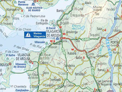 Marina Vilagarcía se ubica dentro de las instalaciones del puerto comercial y pesquero de Vilagarcía de Arousa, en la ensenada que se forma al W de punta Ferrazo, en la costa S de la ría de Arousa. Una vez dentro de la ría, superadas ya la Península de O Grove y la isla Sálvora, pondremos rumbo a pasar entre el islote Jidoiro Pedregoso y la isla Rúa. Esta canal, con unos 1.600 m de anchura y fondos de 60 a 70 m, es la más segura y aconsejable para todas aquellas embarcaciones que se dirijan al interior de la ría. Una vez superada ésta por su medianía enmendaremos el rumbo para navegar al 025º hasta superar la oposición punta de Cabío – punta Barbafeita, momento en el cual caeremos 50 grados a estribor para comenzar a navegar al 075º por la canal que nos conduce entre las bateas mejilloneras hasta la bocana balizada de Marina Vilagarcía, que se encuentra al N de las instalaciones portuarias, entre el Muelle del Ramal y el Muelle de Pasajeros.
